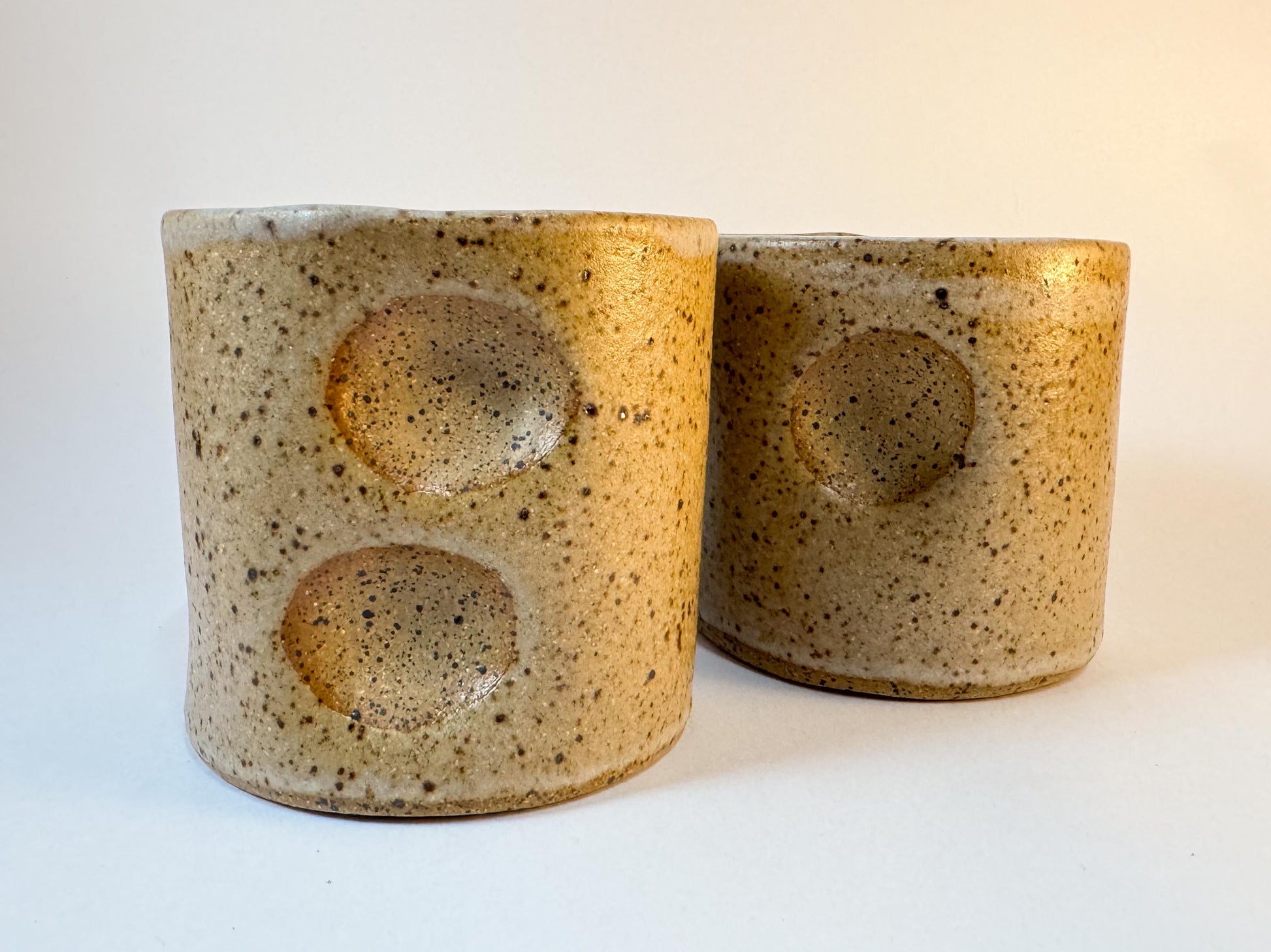 Each cup is approximately 3x3" and features and ergonomic grip.